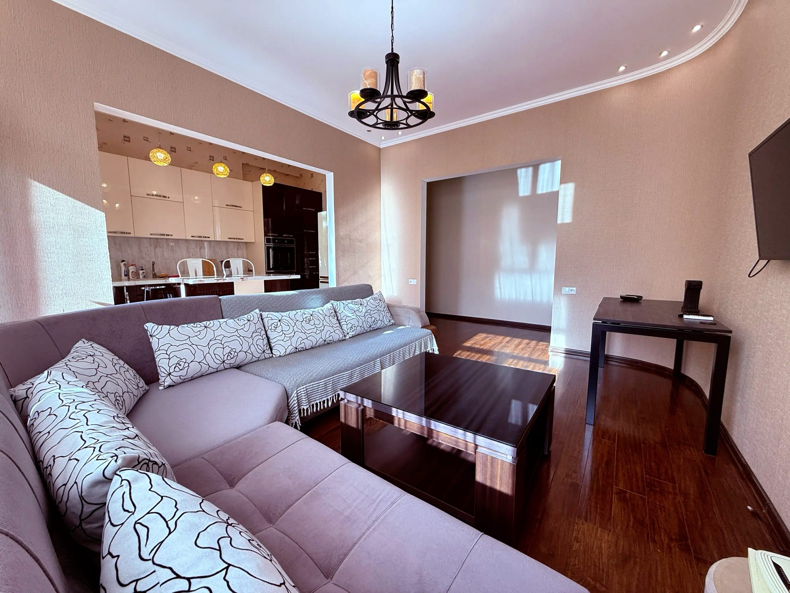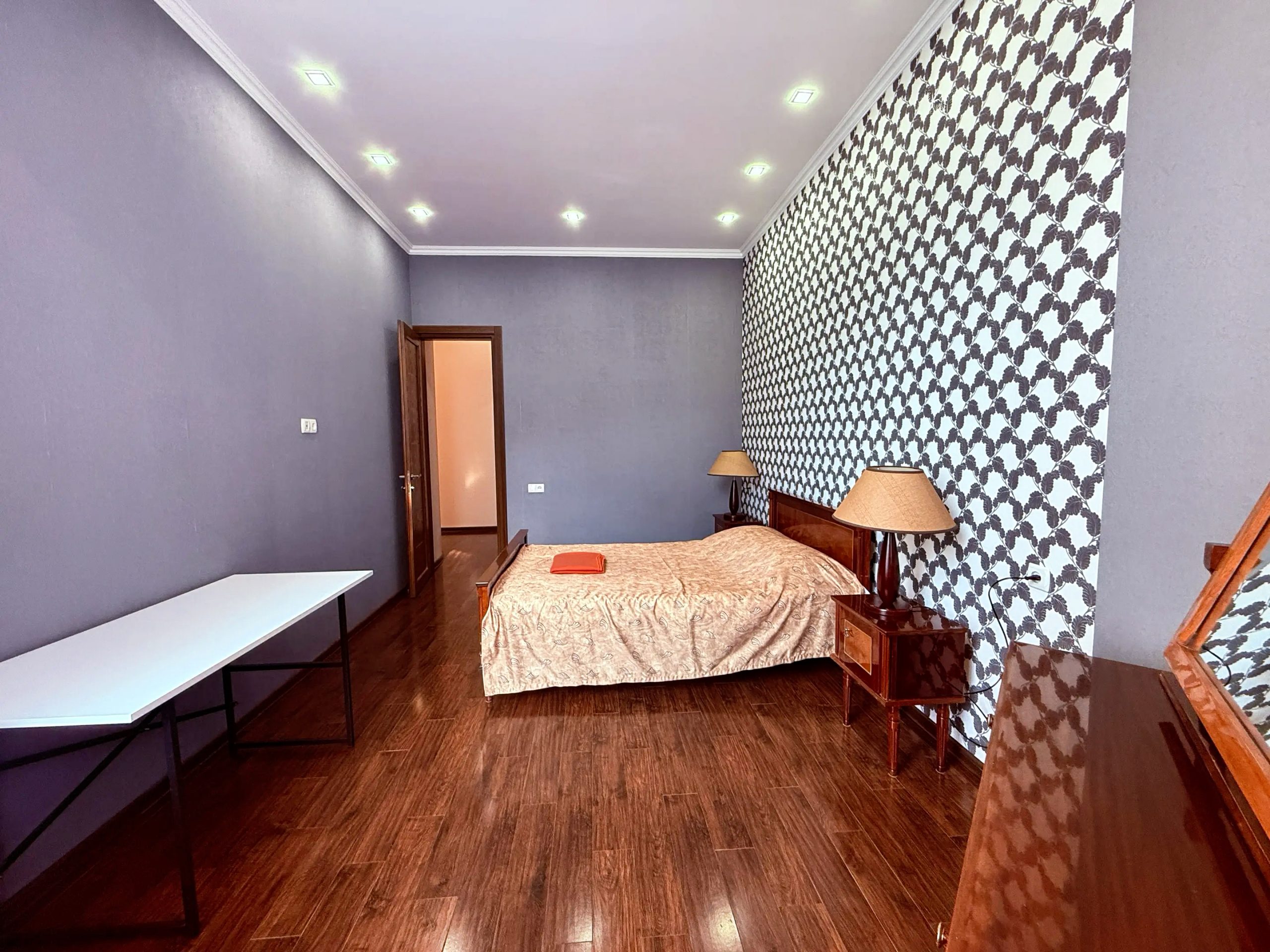 ქირავდება ოროთახიანი ბინა ახალაშენებულ კორპუსში, ვაკეში, მრგვალ ბაღთან ახლოს. ბინა მდებარეობს ძალიან წყნარ და მშვიდ გარემოში. აღჭურვილია ყველა საჭირო ავეჯითა და ტექნიკით. ბინას დამატებით აქვს საგარდერობე ოთახი და აივანი.